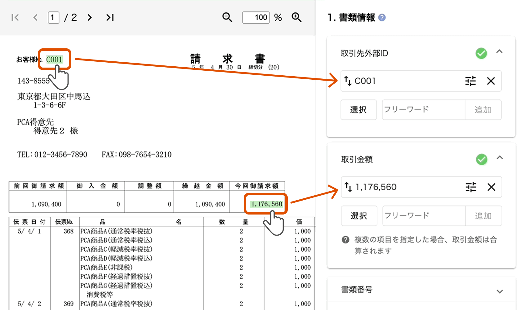 先ほど設定した書類情報から