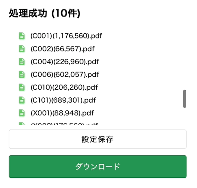 処理後は、ZIP形式でまとめて