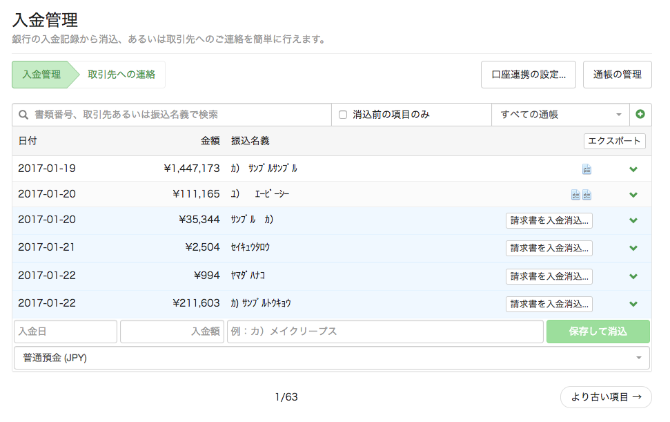 ①「入金管理」の消込画面はすごい