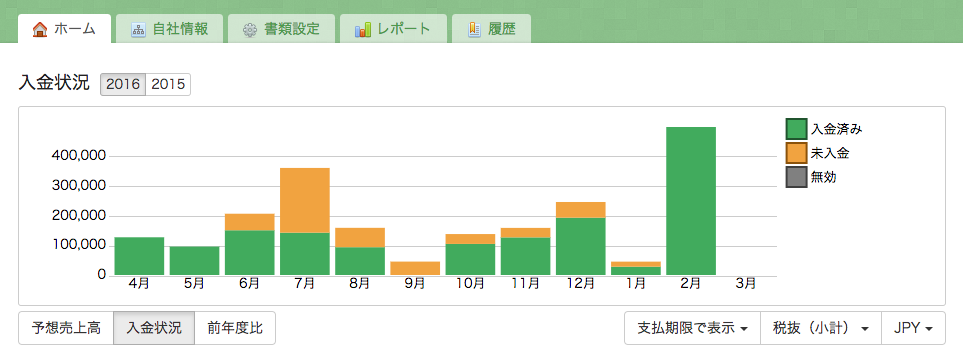 ②「グラフ」で未入金を発見