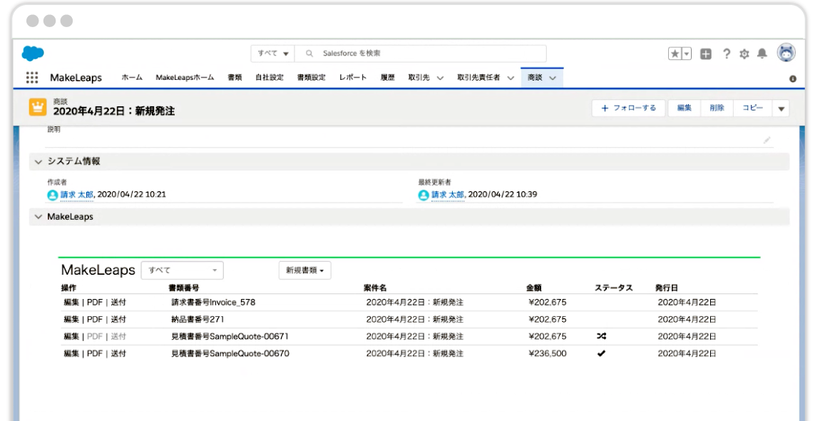 そこで、Salesforceと連携できて、かつ見積書の作成・郵送ができるシステムを検討したときにMakeLeapsに行き着きました。