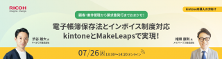 2022年7月26日(火) 13:30-14:20 【オンラインセミナー】kintone x MakeLeaps – 顧客・案件管理から請求書発行業務までおまかせ!電子帳簿保存法・インボイス制度対応kintoneとMakeLeapsで実現!を開催します。